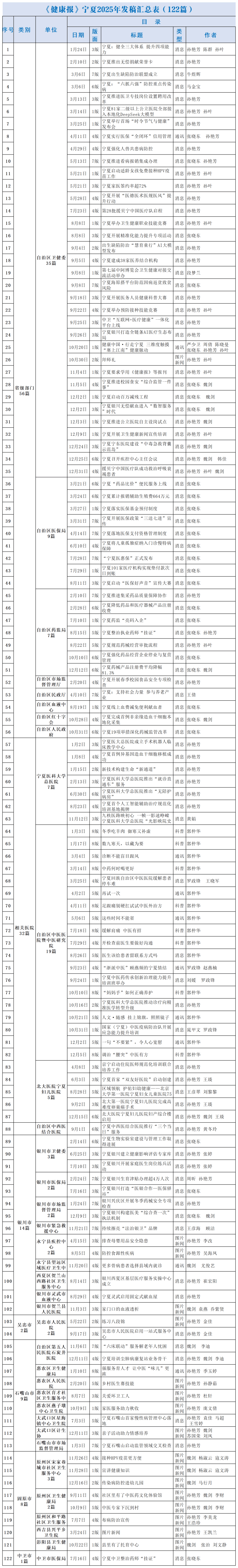 1月15日,银川市永宁县西医病院党支部结合该县连合西街道利平易近社区新时代就业创业办事坐,配合开展“严冬送暖护安康”从题勾当,为户外劳动者及社区居平易近奉上暖心关怀。勾当沉点面向网约车司机、环卫工人、外卖配送员等新就业群体,现场供给免费血压丈量取健康征询,并细心熬制具有驱寒暖身、益气健脾功能的中药茶饮,供大师饮用。现场还设立西医理疗专区,由专业医师为颈肩腰腿痛苦悲伤人群供给针灸、按摩等西医适宜手艺办事,并同步常见病症的保健方式,普及适用西医学问。 2。(通信员 李财)1月14日至15日,固原市原州区卫生健康局组织开展居平易近健康档案取家庭大夫签约办事办理系统专题培训。本次培训笼盖全区11个乡镇卫生院及3个城市社区卫生办事核心,环绕居平易近健康档案消息流程、家庭大夫签约办事规范要点等焦点内容展开系统,旨正在进一步提拔下层健康办理办事质量,鞭策居平易近电子健康档案的规范化、高效化操纵。全区各卫生院(社区卫生办事核心)营业专干、村医及家庭大夫团队等共计400余人加入培训。 3。(通信员 刘文静)近日,固原市彭阳县卫生健康局深切推进打算生育特殊家庭“暖心步履”,组织工做人员开展上门走访慰问。通过取群众面临面交换,认实倾听他们的现实需求取坚苦,并免费奉上拆有糊口用品的“暖心包”。走访期间,工做人员同步开展健康学问宣传,连系冬季天气特点,详尽防寒保暖、慢性病防治及日常保健要点,指导群众提拔健康办理认识。此次勾当以精准化、贴心化的办事传送党和的关怀,切实加强了特殊家庭的获得感取幸福感。 4。(通信员 张盼盼)近日,固原市原州区宋家巷城市社区卫生办事核心聚焦辖区老年人、慢性病患者、特殊坚苦群体、孕产妇等沉点人群,组织家庭大夫签约团队开展上门签约履约送温暖办事。团队为居平易近供给面临面随访、全面身体情况评估、专业用药指点、个性化康复锻炼等精细化健康办事;环绕冬季常见病、多发病防治沉点,向居平易近普及合理炊事、适量活动、戒烟限酒、心理调适等科学糊口体例学问,同时贴心提示居平易近做好防寒保暖、谨防不测颠仆,切实保障辖区居平易近幸福安康送新春。 5。(通信员 秦玉凤)1月14日,银川市永宁县望洪镇卫生院家庭大夫办事团队走进村平易近家中,开展入户随访工做。团队聚焦高龄白叟、失强人员及慢性病患者等沉点人群,供给上门血压血糖监测、用药指点和个性化健康评估办事,并同步更新居平易近电子健康档案。随访过程中,大夫们还连系居平易近现实,详尽日常饮食调度取常见疾病防止学问,传送适用健康技术,让群众正在口享遭到贴心的医疗卫生办事,进一步建牢下层健康防地。 6。(通信员 马兰)1月13日,固原市西吉县社区卫生办事核心正在该县人平易近广场开展了以“消弭麻风风险 共建健康中国”为从题的义诊宣传勾当。勾当现场,医护人员通过义诊征询、学问宣讲、发放宣传材料等多种形式,向居平易近普及麻风病的病因、路子、防止办法及国度免费医治政策,耐心解答居平易近疑问,出力消弭对麻风病的惊骇取蔑视。此外,现场还为居平易近供给免费血压丈量、健康征询等办事。此次勾当累计发放宣传材料200余份,接管征询50余人次。 7。(通信员 聂佳雪)近日,中卫市中宁县舟塔乡卫生院正式启动辖区65岁及以上老年人常态化健康体检工做。本次体检涵盖根本查抄、DR检测、糖化血红卵白检测等多项内容,旨正在尽早发觉老年人潜正在健康问题,供给个性化健康指点取干涉方案。同时,卫生院进一步完美健康档案办理机制,对每位老年人的体检数据前进履态记实,为后续医疗办事的开展建牢根本。 8。(通信员 陈瑶)1月13日至14日,银川市妇长保健院结合银川市西医病院、永宁县妇长保健院,组建专项办事队,走进永宁县闽宁镇,深切该镇木兰长儿园、福宁社区托育园、永宁县第十长儿园及蔚湖城童也托育园,开展婴长儿照护专项培训取实地指点工做。办事团队通过理论取实操演示相连系的体例,环绕婴长儿日常护理、疾病防止、晚期成长等内容进行系统培训,并对各园所的照护、设备设置装备摆设、操做流程等环节开展一对一现场指点。 9。(通信员 )近日,固原市西吉县马建乡卫生院全面启动适龄女童HPV疫苗免费接种工做,为辖区内的花季少女建牢宫颈癌防止的健康樊篱。此次接种工做严酷遵照“知情志愿、免费接种”准绳,通过普遍宣传政策、优化接种办事流程、设置征询登记区、接种区取留不雅区并实行分时段错峰接种,无效削减人员堆积。接种现场,医务人员耐心为女童及其监护人解答疑问;接种完成后,医务人员监护人伴随女童留不雅30分钟,确认无非常后方可分开,并细致奉告后续留意事项及第二剂次接种的提示体例。 10。(通信员 马小娟)1月13日下战书,银川市永宁县闽宁区域医疗卫生核心成功举办第三期黄帝内针专题培训。本次培训立异采用“现场讲授+线上曲播”双轨并行模式,既为本核心医务人员搭建了深度进修西医适宜手艺的平台,也将优良培训资本辐射至周边乡镇卫生院及村卫生室,无效拓宽了培训笼盖面。培训设置的现场互动答疑环节,鞭策了讲授相长,实现了区域内医疗手艺交换取资本共享,进一步提拔了下层西医办事的能力取程度。 11。(通信员 杜轩)近日,石嘴山市惠农区