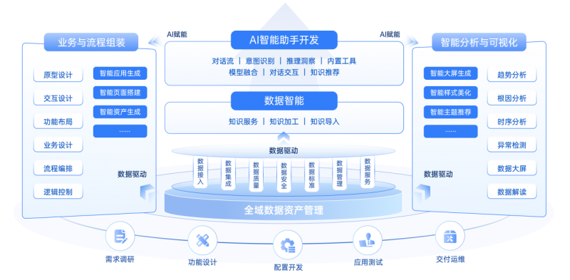 行业亟需一场完全的“出产力”,将软件出产从一种“身手”改变为一种可办理、可怀抱、可复用的“工业化系统”。正在此布景下,“软件工场”模式应运而生,并敏捷成为财产共识。 数睿数据软件工场,以“独创的4+3原型驱动软件交付方式”沉塑软件开辟流程,依托“集中交付、尺度化交付流程、同一交付东西”,实现企业级软件“工场化”批量软件项目标快速定制。 综上而言,数睿数据软件工场的扶植,虽然早于行业普及扶植以及该项尺度的制定,但正在组织、根本设备、开辟运维及智能赋能四大能力域上的系统建立,不只高度契合国标要求,更达到了最高的“持续优化级”成熟度。 数睿数据软件工场运营以来,为数百家客户供给高效能、高质量软件交付。这一过程中沉淀的诸多开辟尺度和办理规范,同样赋能多个软件企业,为他们自建软件工场或参照软件工场模式开展高效能软件交付,供给了系统化的尺度方式和实践对标。跟着AI 手艺的融入,这种模式将帮力更多企业实现规模化交付,正在提拔交付效率的同时,也为盈利提拔带来更多可能。 可复用的组件:平台将复杂系统的功能开辟需求笼统为可设置装备摆设的组件,笼盖数据模子、营业逻辑、页面交互、营业流程等1500多个可视化组件,共计14000多个通用可设置装备摆设项。通过无代码拖沓拽、AI辅帮开辟等能力,极大地降低开辟门槛。