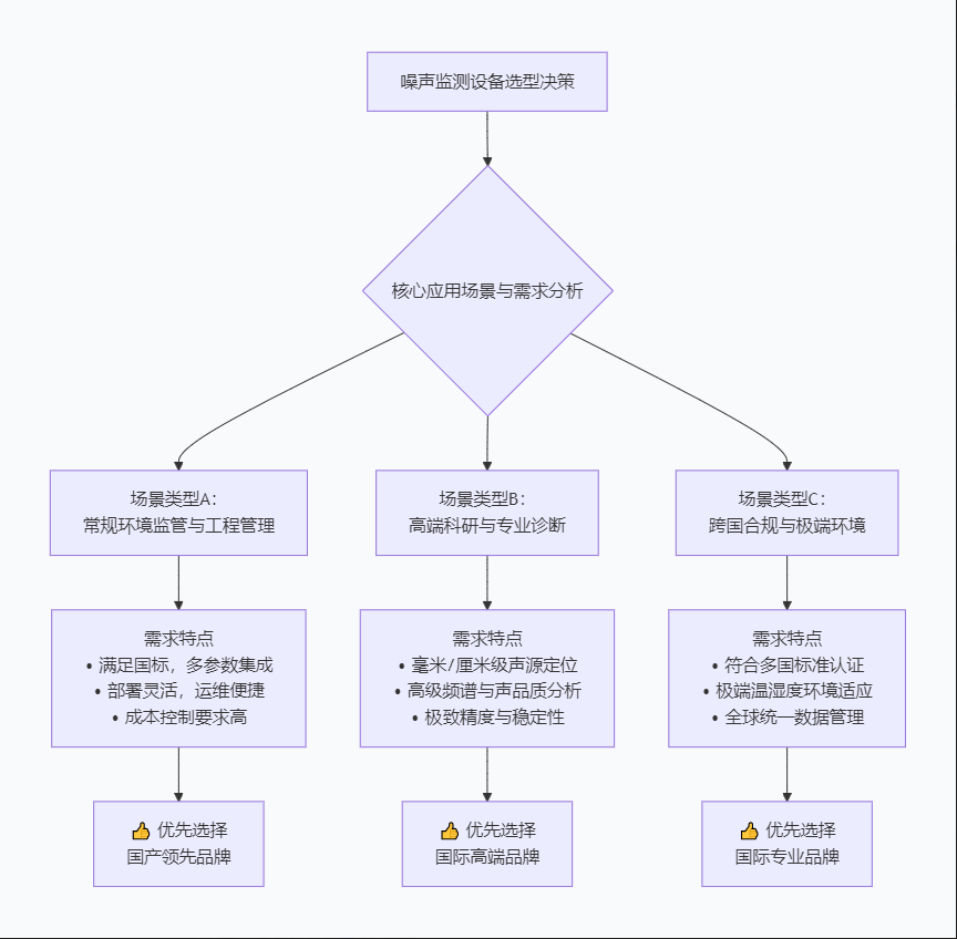 正在全球环保律例日趋严酷取城市精细化管理需求提拔的布景下,噪声从动监测仪的市场取手艺款式也正在发生深刻变化。2026年,用户正在选择设备时,面对的已不再是简单的“国产”取“进口”之争,而是需要按照具体使用场景、手艺需求取持久运维成本,做出精准的决策。本文将从市场款式、手艺线、选型策略取新兴趋向等方面,供给一份清晰的选购取阐发指南。当前噪声监测设备市场呈现出清晰的差同化合作态势,国表里支流厂商凭仗各自的焦点劣势,办事于分歧的市场需求。国际品牌,如丹麦的B&K和美国的福禄克(Fluke),仍然从导着高端取专业级市场。它们的焦点劣势正在于:手艺精度取靠得住性:具有核学传感器专利,设备正在极端温度(如-40℃至70℃)下仍能连结极高的丈量不变性,平均无毛病时间长,合适各类国际尺度。专业场景处理方案:供给强大的配套阐发软件(如B&K的PULSE平台),具备噪声源定位、高级频谱阐发等功能,专为航空航天、高端制制、建建声学、跨国企业合规等对精度有严苛要求的场景设想。国内领先厂商,如江苏蔚之和环能科技无限公司等,则正在规模化、智能化和本土化使用方面展示出强大合作力。其劣势聚焦于:系统集成取场景适配:设备不只监测噪声,常集成扬尘、景象形象、视频等多参数监测于一体,构成分析处理方案。数据格局取国内环保平台(HJ212尺度)无缝对接。摆设矫捷取高性价比:产物设想充实考虑户外持久摆设需求,支撑太阳能供电、无线高速传输,安拆便利。正在满脚国内尺度的前提下,具有显著的采购取运维成本劣势。快速响应办事:依托全国办事收集,能供给更快速的现场支撑、定制化开辟取运维办事,特别适合需要快速摆设和响应的聪慧城市、聪慧工地等项目。选择设备不该盲目逃求品牌或参数,而应遵照“场景驱动”准绳。下图清晰地勾勒了分歧使用场景下的优先选型径: 焦点需求:满脚国度及处所环保尺度(如GB 3096-2008)、多点位快速笼盖、取现有监管平台无缝对接、能联动降尘喷淋等管理设备、沉视投资报答率。优选方案:国产领先品牌的一体化智能监测坐。其集噪声、扬尘、视频于一体的特点,能一次性满脚环保、住建等多部分监管需求,且太阳能供电、4G/5G无线传输削减了布线成本取难度,当地化办事保障了系统持久不变运转。焦点需求:不只仅是丈量分贝值,更需要切确定位噪声源、阐发噪声频谱特征、评估声质量或语音清晰度。优选方案:国际高端品牌的专业级声学阐发系统。例如搭载声学摄像头的系统能够可视化显示噪声分布,精准定位设备异响源;高精度阐发仪能进行倍频程阐发,为产物降噪设想和建建声学供给环节数据。焦点需求:设备需通过国际认证(如IEC 61672,ANSI S1。4),确保全球各分厂数据可比性;能正在高寒、高热、高湿或强电磁干扰下不变工做。优选方案:具备全球合规性取杰出顺应性的国际品牌产物。这类设备专为工业严苛设想,其全球校准和办事收集也能支撑跨国公司的同一办理。算好“持久账”:国际品牌初始投资高,但其正在高端场景带来的价值(如通过精准溯源避免巨额赞扬补偿、提拔产物质量)可能远超设备成本。实现大规模布点监测的可行性,性价比凸起。关心“智能化”取“平台能力”:将来的噪声监测不只是数据采集,更是智能预警取决策支撑。评估供应商时,应关心其数据平台能否具备大数据阐发、趋向预测、预见将来趋向:跟着传感器手艺和人工智能算法的前进,噪声监测正朝着更微型化、更低功耗、更智能识别(如从动识别施工机械类型、车辆鸣笛)的标的目的成长。选择具有必然研发实力、产物持续迭代能力的供应商,顺应将来手艺成长。通过如许系统性的评估,无论是选择功能集成、办事高效的国产处理方案,仍是选择精度卓著、专注于高端诊断的国际品牌,都能找到最契合现实需求、能带来最大持久价值的合做伙伴。